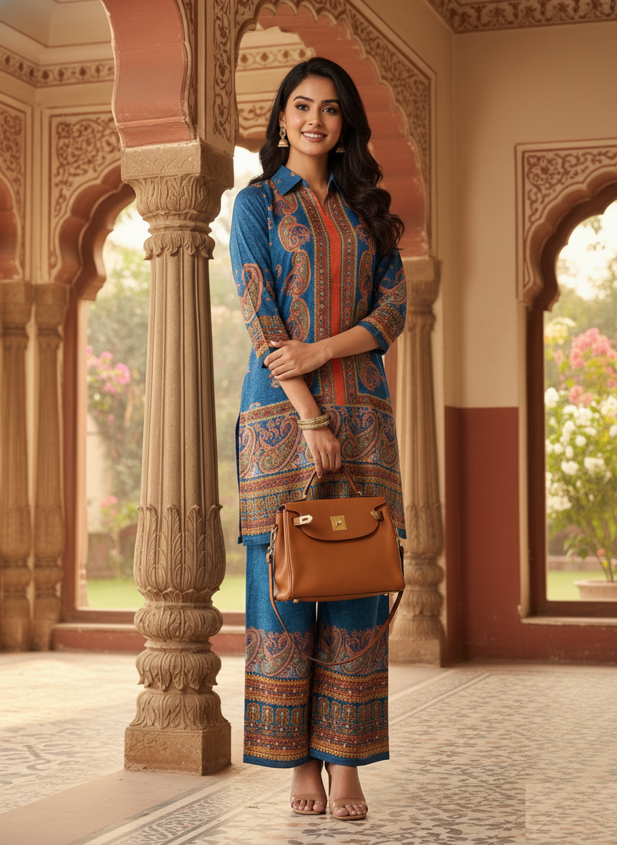 Designer Pure Cotton 2-Piece Set with Delicate Embroidery